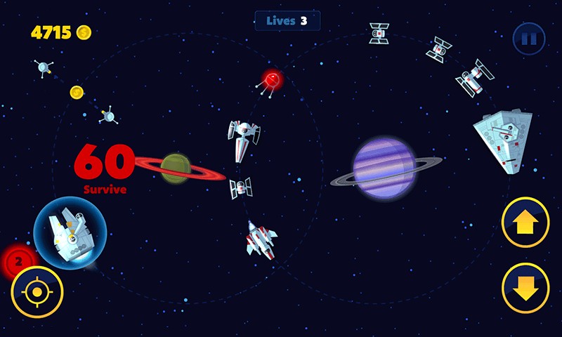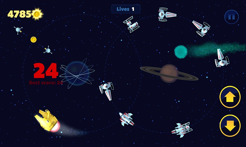 Game luar angkasa yang sederhana dan menyenangkan. Terbang berputar-putar dan hindari menabrak kapal musuh. Selesaikan misi dan terbang melintasi galaksi. Bertahan selama Anda bisa. Mempercepat atau memperlambat, hanya saja jangan menabrak dan bersenang-senang. Bisakah Anda membuka kunci dan terbang dengan semua pesawat luar angkasa yang tersedia? Bersiaplah, pilot!