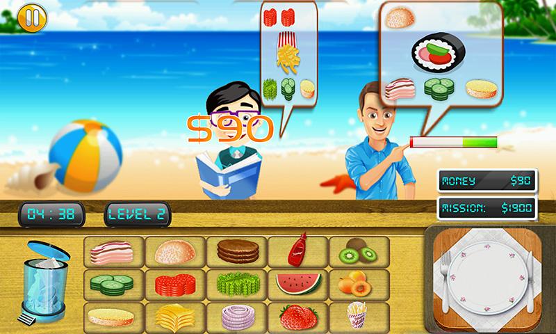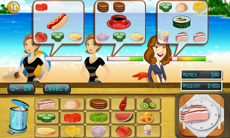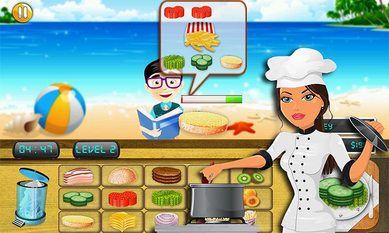 Anda bermain sebagai master Chef di makanan cepat saji bistro pantai.